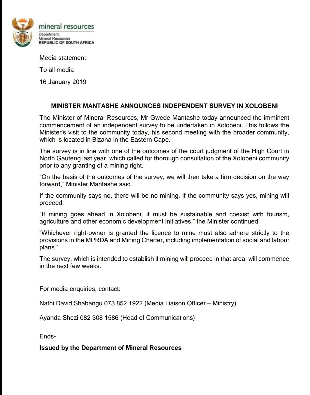 Statement by the Department of Mineral Resources, @DMR_SA, following our meeting in #Xolobeni with community members