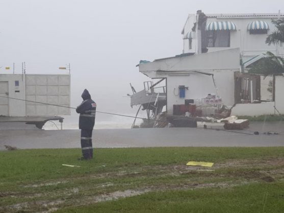 Kingsway High School paramedic, Chris Botha said: “We treated one elderly man that sustained severe head and spinal injuries. Walls were collapsing around us but we managed to stabilise him on a spinal board before transporting him to hospital. Rockview Road is collapsing, half of it is already gone.”