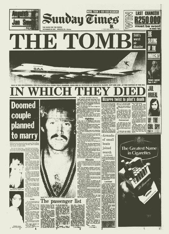 A South African newspaper’s front page two days after the crash. (The Sunday Times)